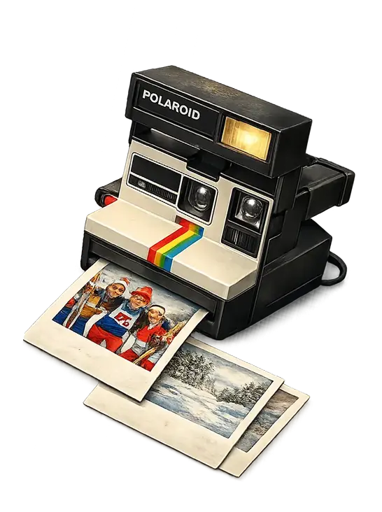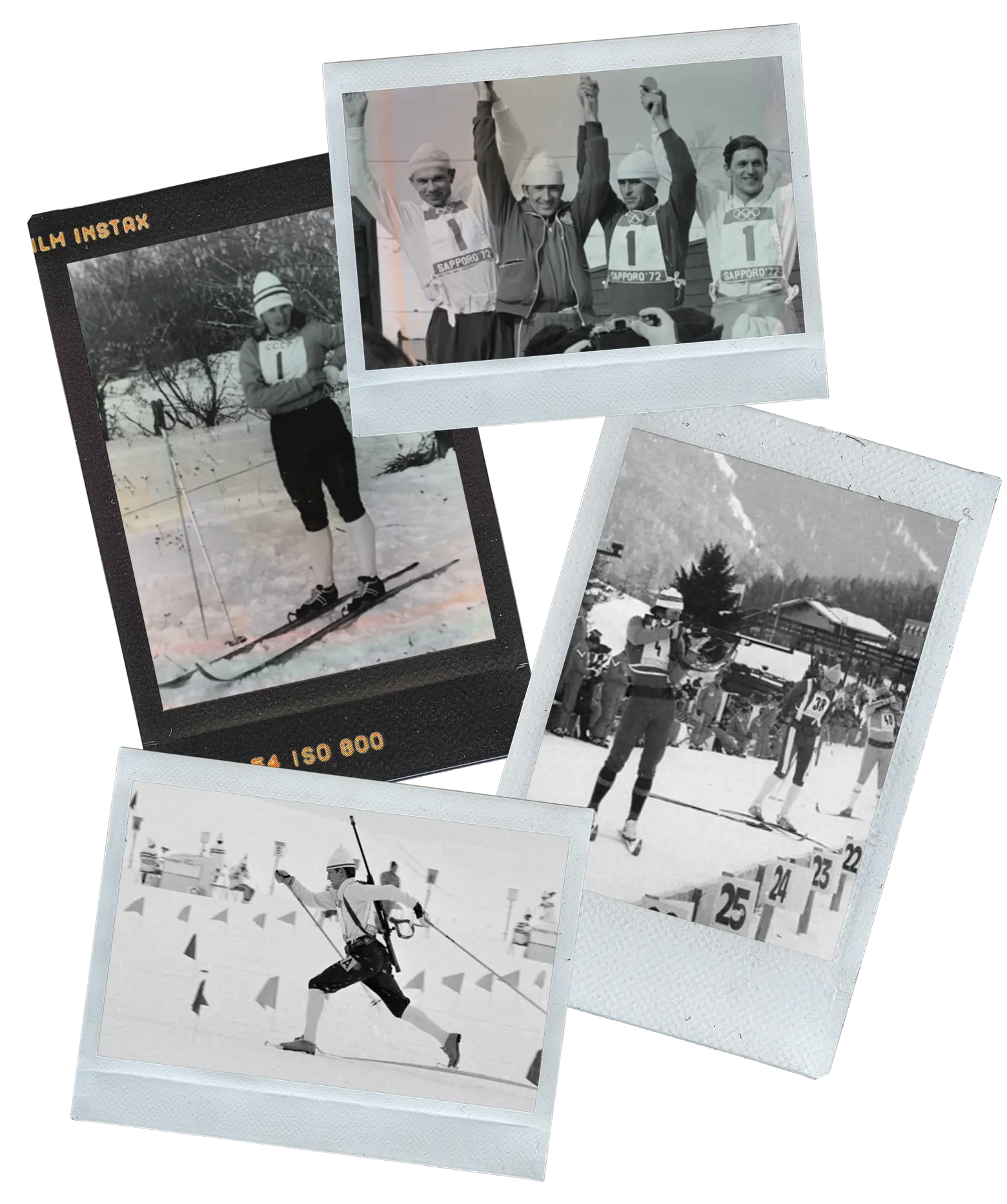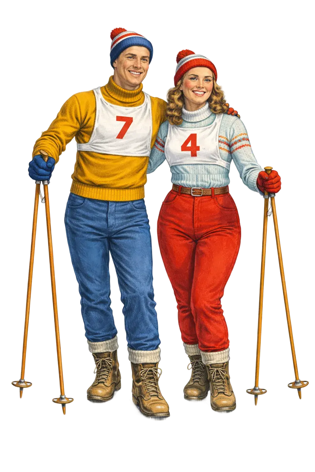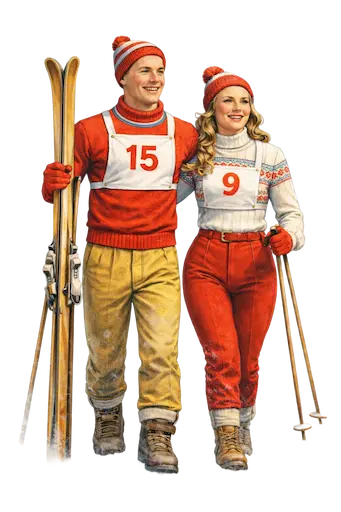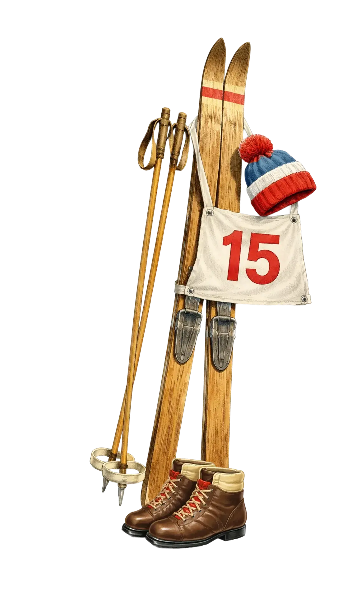 Ретро-образ Подбираем инвентарь и форму образца 1980–1990 гг. Приоритет—деревянные лыжи, палки, шапки петушки. Минимум одна вещь.